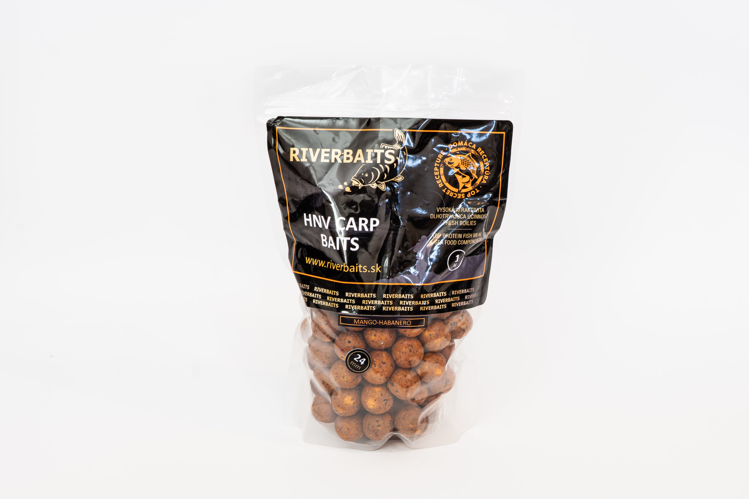 Tento boilies sme zložili na základe úspechu Pikantnej Čučoriedky, ktorá nás svojou záberovosťou veľmi prekvapila a preto sme opäť začali skladať boilies so sladkou príchuťou a veľmi silnou mäsovou zmesou spojenou s vynikajúcimi korenistými ochucovadlami. Hlavnú zmes sme znova skladali z tých najkvalitnejších živočíšnych múčok, ktorých hlavnou súčasťou sú múčky z morských živočíchov, pretože tieto sa nám najviac osvedčili ako atraktor na veľké kapre. Zmes je tak isto doplnená o výborné drobné pražené vtáčie zoby, ktoré sú tiež veľmi potrebné ako potravinová zložka pre kapre, ktorá ma vysoký obsah vitamínov, tráviacich enzýmov a tak isto dôležitých sacharidov. Pri dochucovaní tejto guličky sme brali veľký dôraz na jej konečné dochutenie tými najkvalitnejšími Anglickými esenciami. V prvotnom štádiu sme spravili osem vzoriek, ktoré sme namiešali z viacerých druhov esencií, ktoré boli prioritne z exotického ovocia. Finálny výsledok je skladba 6 esencií, ktorou hlavnou zložkou je Mango a preto sme aj zvolili názov Mango Habanero lebo je doplnené pastou veľmi pikantnej chilii, ktorá sa volá Habanero. Už pri prvotnom skúšaní tohto boilie sme zaznamenali veľmi vysokú atraktívnosť a vysokú záberovosť, tiež sa nám podarilo chytiť pri prvých testovaniach kapitálne kapre na ťažkých revíroch ako sú odľahlé divoké rieky a priehrady. Aj keď tento boilie skúšame iba krátku dobu už teraz sa ukazuje že to bude jedna z najlepších nástrah na veľké kapre z našej dielne.